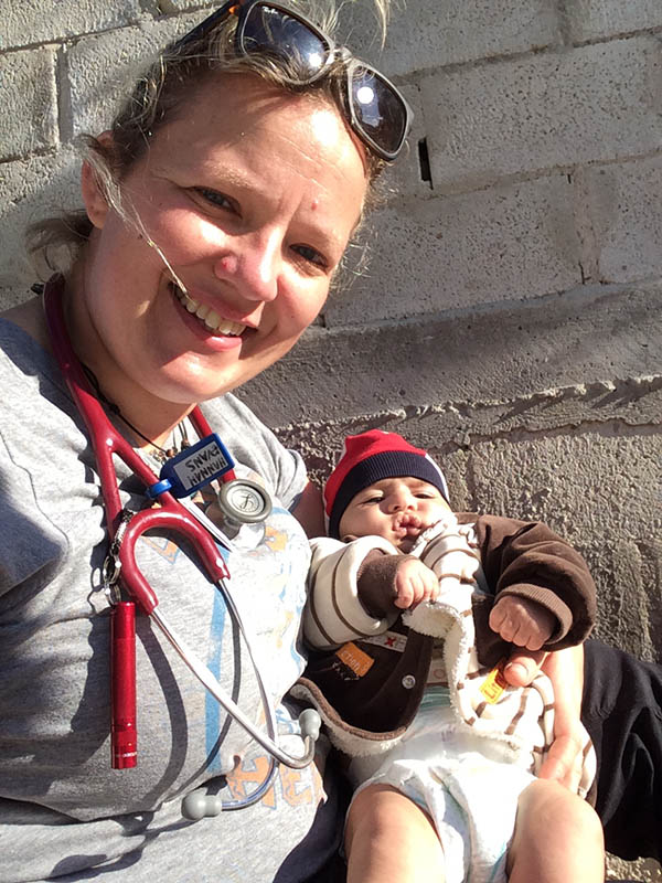 We call out outside the tent and a lady unzips the canvas door. She reveals a tiny, 25-day-old, heavily swaddled baby in her arms. She tells me, through a translator, that she is experiencing some abdominal pain after her Caesarean section and asks if I could examine her abdomen. She is not breastfeeding and relying on handouts of milk powder.