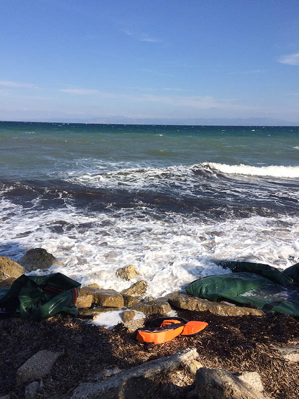 We touchdown in Mytilini, the main port of the Island of Lesbos, a picturesque hub for Greek island travellers. The sea glints in the October sunshine and I catch my first glimpse of the iconic lifejackets, which plague the news and litter the shoreline.