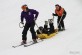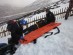 The majority of casualties are evacuated from the piste by Tremont sledges: a simple 2-handled sledge driven by a single patroller, with the assistance of a back rope on particularly steep or icy slope. Braking is provided by a chain which can be deployed under the belly of the sledge, but once deployed the sledge has to be lifted to release it on any flat slope. Casualties are packaged in the sledge on an insulating mat, wrapped in a thick casualty bag. This is relatively easy on the main slope faces, but within a distant valley can be difficult with the casualty having to be taken uphill by a patroller (which is exhausting) or behind a skidoo.