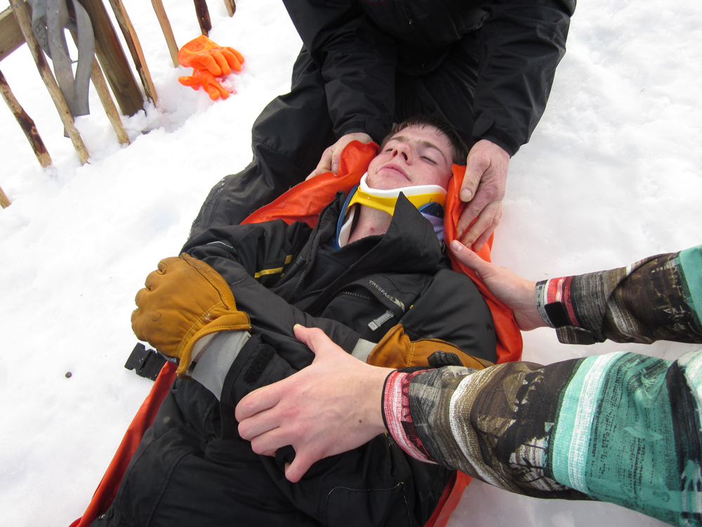 Orientated, ambulant casualties may be evacuated by skidoo by one of the operating “Oscars”, the on site mechanical engineers. This in itself can be quite an experience, and one that the majority of casualties really quite enjoy. A ski patroller often follows the casualty down afterwards, carrying their skis and equipment.