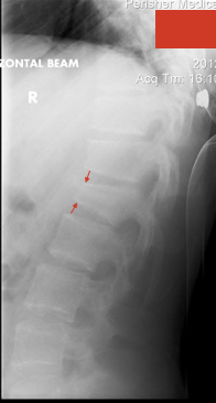 We are taught to roll the patient and examine them for spinal tenderness, and of course that is worth doing. But, some anterior wedge compression fractures present without posterior mid-line tenderness, particularly those in the thoracic spine. Patients have generally been winded and their pain may be retrosternal rather than in their back (remember how visceral pain is quite non-specific).